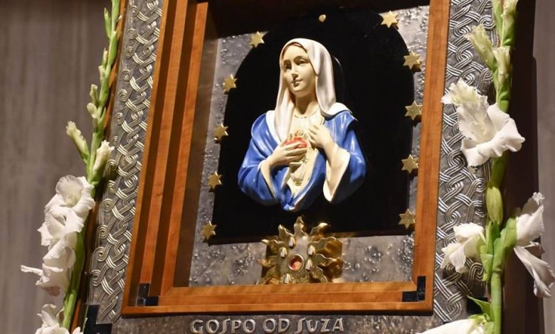 “Majčinskom dobrotom pogledaj boli svijeta. Obriši suze svima onima koji trpe, zaboravljenima, očajnima, žrtvama svakovrsnog nasilja. Daj nam svima suze kajanja i novoga života da nam one otvore srca za preporoditeljski dar Božje ljubavi. Daj nam svima suza radosnica zbog velike nježnosti tvoga Srca. Po Kristu Gospodinu našem. “