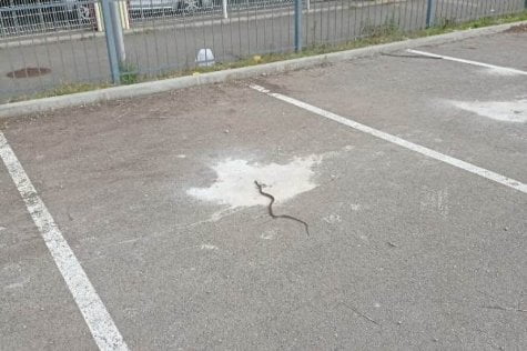 Ubrzo nakon što je primjećena zmija je otpuzala prema mercatorovoj garaži.